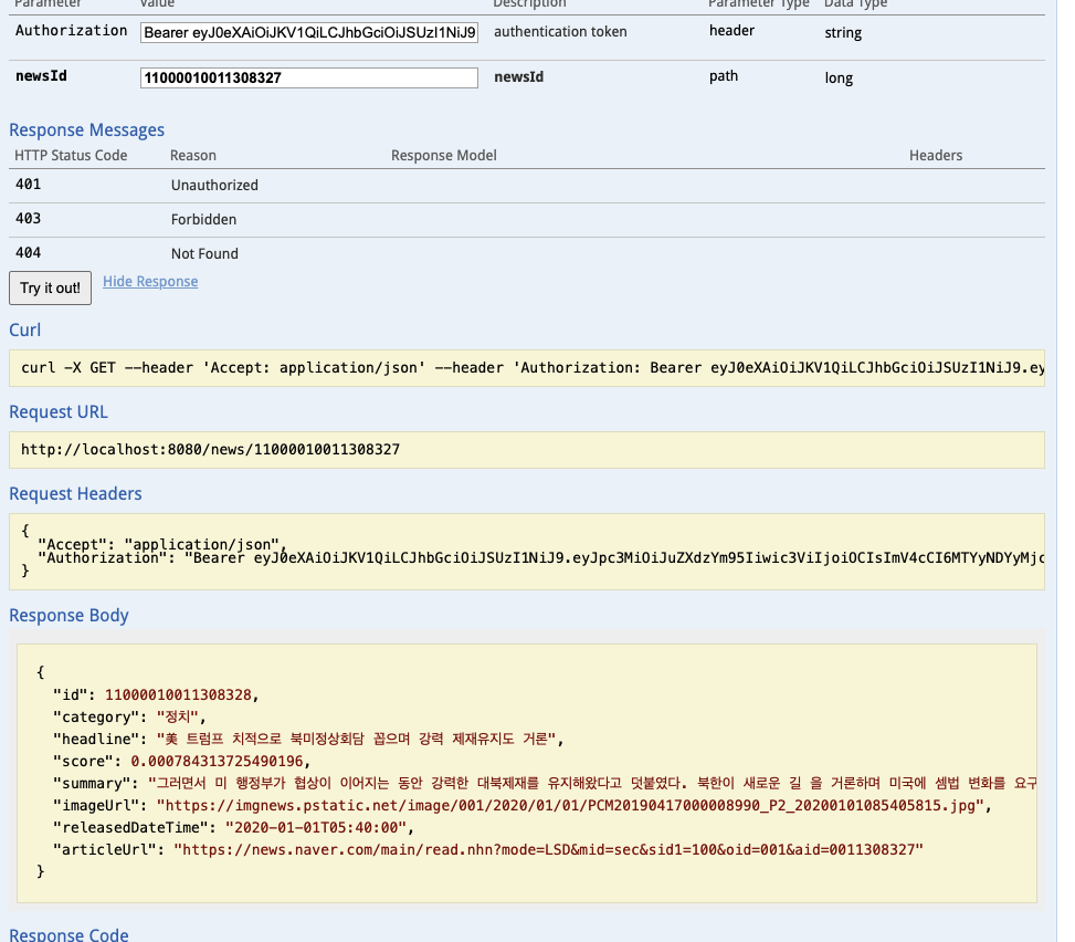 database 에 저장되어 있는 news를 다음과 같이 json 형식으로 서빙해주는 과정에서
